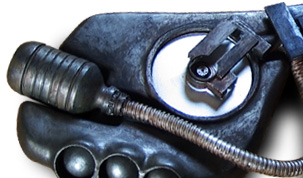 めんどくさくて本体と一緒くたにシルバーをスプレーしてしまいました。 塗装はシルバーの上にガンメタリックを筆塗り、その上にアクリル絵の具でシャドウや焼けたり錆びが出たりしたような雰囲気を演出して完成です。 |