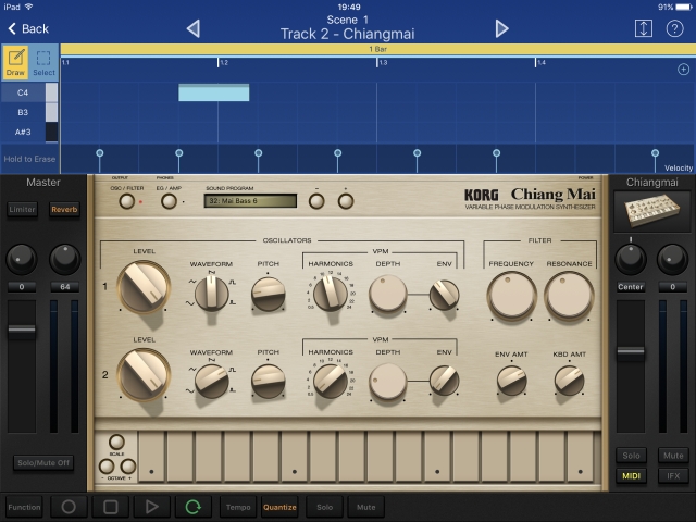 未だにiOSデバイス用のMIDIキーボードを持っていないので、ソフトウェアキーボードで適当に作る。あ、plugKEYは持っていたんだった。ちょっと離れていることだったので面倒でそのまま弾いていた。