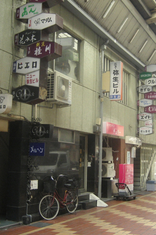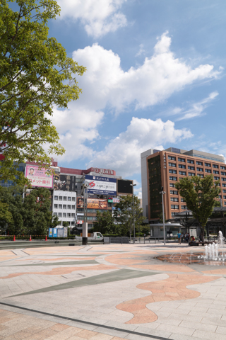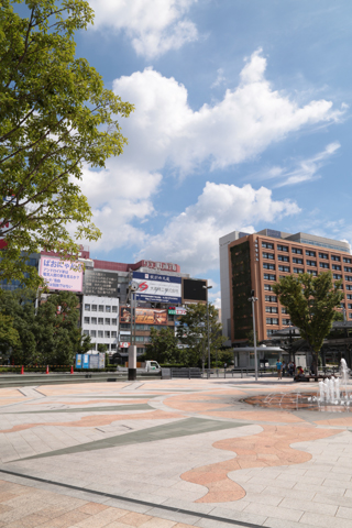 駅前合成はこのように。青空の抜けは捨てがたいが、やはり巨大感を強調したいので、飲み屋街方面で。