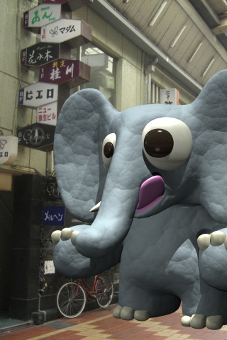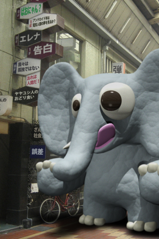 それならば、元のバーの雑居ビルが並ぶ写真ならどうかと合わせてみると路地にぎっちりになっている象が画面に暑苦しく物語的にも合っているかと思い、こちらも作り進めました。バーの看板の文字をショートショートの題名に変えています。こちらも変える作業がそこそこ手間かかってたり。3DCGはモデリングは見栄えがするので作業が大変そうに見えるけど、画像の修正や変更も結構手がかかります。