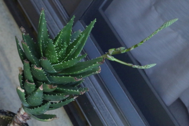 花がつくとは思わなかったサボテンからするすると伸びて花が咲きそうです。以前花の咲くことのない植物が花が咲いたときはその植物の健康状態があんまりよくない表れだった。このサボテンはどうなんだろうか。なん十年も花なんか咲いたことないのに。