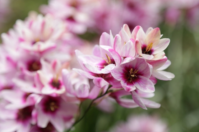 茎が凄く細いので花が咲くとすべて倒れてしまうので棒に結わえています。