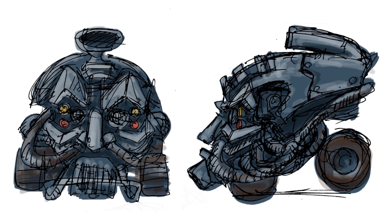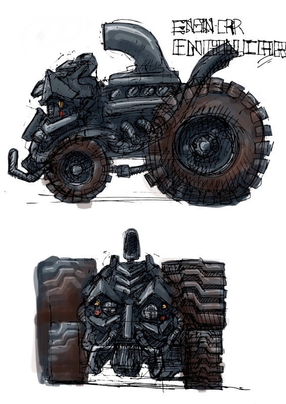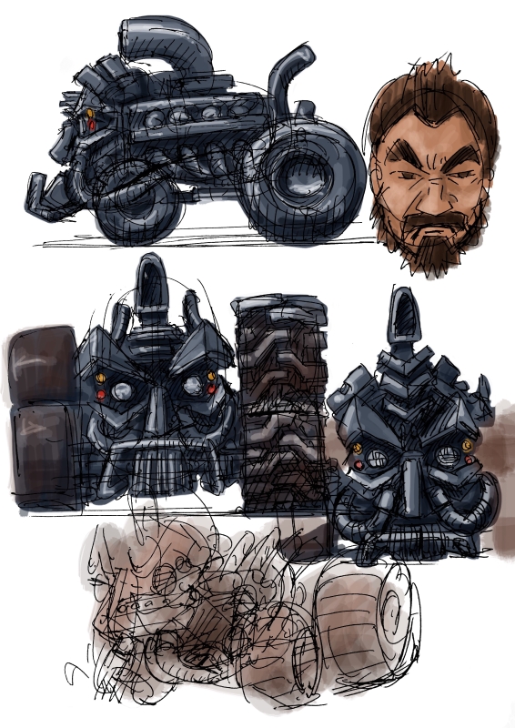 Picture・gallery エンジンヴィークル 投稿者: murbo 投稿日: 2017/02/202017/02/20 入院の付き添いかつ待ちに描いていた。iPadはこういう時に便利だなと思った。耳が塞がれるのが欠点だが、曲を作ることも可能だ。 考えがまとまらないので、とりあえず吐き出す感じで。 最初はレシプロ飛行機かトレーラーの頭、トラクターとか、そういう感じで考えていたが、描いてみると耕運機のトラクターが印象としてあっているかなあ。 顔もそうだが、タイヤも印象を強めてくるなあ。 ということで、考え中。 関連記事: TEKKA MARU 電子本の表紙 ワンカットワンシーン映像用のキャラクターを考えていて。
