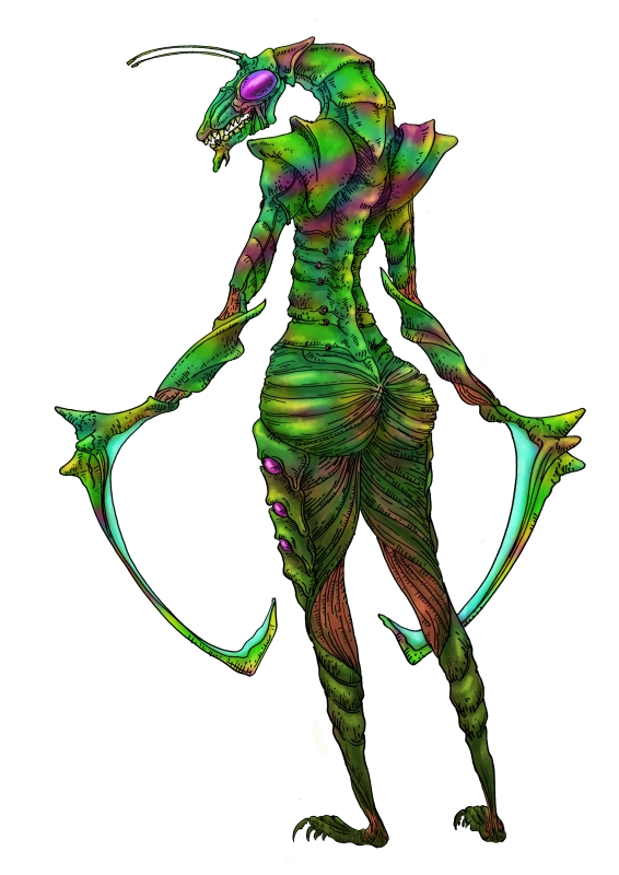 以前にもカマキリ怪人を描いていたことをこれを描き終わてから思い出した。どうやらカマキリとカメレオンを組み合わせたかったらしい。今見るとカマリでしかないんだが。