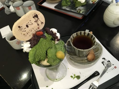 1,000円出したらより良い抹茶がたくさん使えて当たり前かもしれないが、粉っぽさが感じるくらいまでの抹茶を投入しておいしいと感じるバランスにするのはそれなりに気を遣うものじゃないかな。そうでもないのか?この辺りはファンタジーにしておいた方がいいのか?客席は女子力が飽和するくらいに高いが、厨房はおっさん臭しかしない気がしたリ。まぁ、ファンタジーにしておいた方が良いだろうね。女性アイドルと一緒だ。なににしても抹茶ものとしては美味しいと思う。お店の感じも昔の蔵の部分を別にして雰囲気が良いと思う。土日は混み過ぎてゆっくりできないのが惜しい。