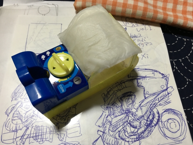 ティッシュペーパーに中性洗剤、一般的な台所用洗剤です。これをそのまま染み込ませます。