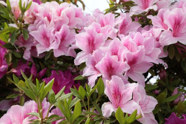 紅白で並ぶのを見つけるのがなかなか大変。白いツツジは焼けて汚れているものが多い。
