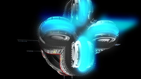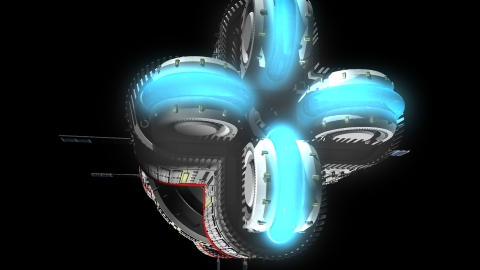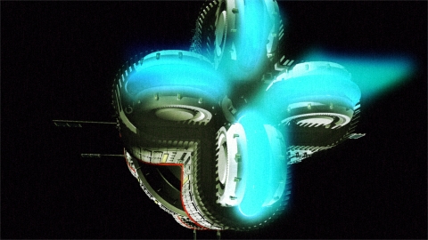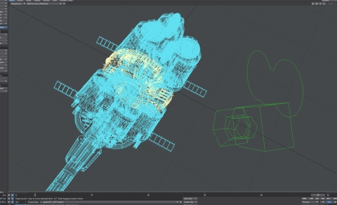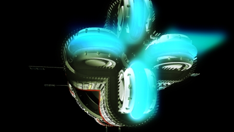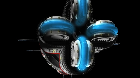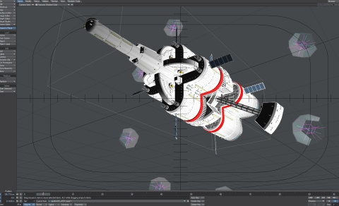やることは中央の居住ブロックを回転させることだけなので本当に簡単なアニメーションです。せっかくなので宇宙船ごと前に進めて動いているようにも見せています。さらにせっかくなので太陽光発電パネルも軽く動かしています。
