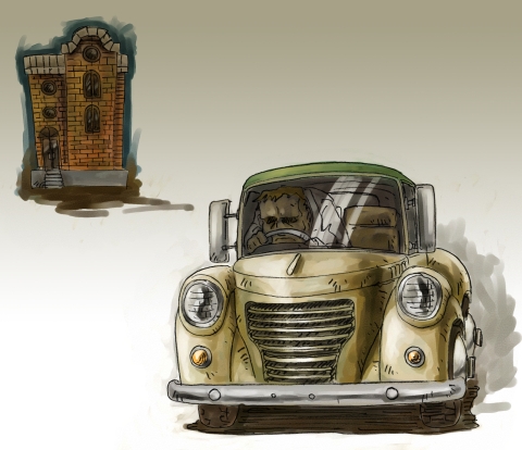 CANBOT ヒマなんだね 投稿者: murbo 投稿日: 2009/05/292017/03/10 又描いた。 何だが寂しい絵だな。嫌だねぇ。 とりあえずおっさんと車の等身が合っていないことに色の塗る直前に気付いたので、そのまま塗ってしまった。 (画像は2014年12月2日に新たに追加しました。) 何がしたかったかというと、車に大柄なおっさんが一人でぎっしり入って運転している様を描きたかったのです。 (画像は2014年12月2日に新たに追加しました。) 後ろの空いている空間は物置。縮小表示だときれいに見えるけど、相当荒いよ。 関連記事: また自販機。 CANBOTほんの少しまとめて出す。 nucar making 180206
