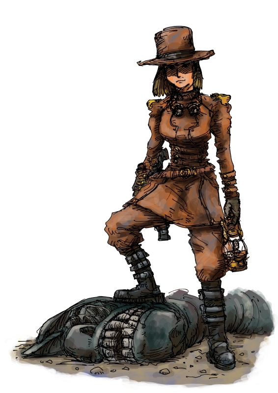 採取した音というのは、この世界の音楽が何らかの事情で怪物化し、その怪物を元の音楽に戻して採取するのがこの人なのです。思い付きで描いたのでいろんなものが足りてませんが、なにせ他の絵を作るためにメモ取っていた紙に適当に描いたものなので。