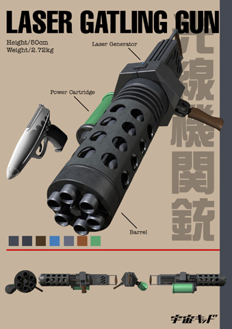 宇宙キッド レーザーガトリングガンのカード的なやつ。 投稿者: murbo 投稿日: 2013/05/032017/01/14 レーザーガトリングガンは架空のTVアニメ、宇宙キッドに登場する宇宙キッドの装備。第8話、第9話、第10話、第13話に登場する。 レーザーが出る感じが一向にしないな。 関連記事: 宇宙銃EXのカード的なやつ。 ファイヤーガンのカード的なやつ。 めっきガンのカード的なやつ。