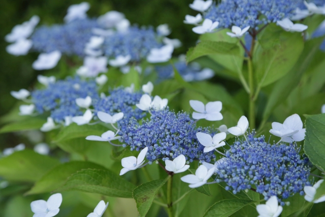 白く見えるが青色が薄くなっているだけ。白い紫陽花は極端に言うと緑がかってみえる。