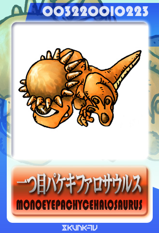 自作キャラクター・自主制作 一つ目パケキファロサウルス 投稿者: murbo 投稿日: 2010/05/052016/10/23 パケキファロサウルスが好きだ。 堅い頭蓋骨をぶつけ合っていると想定する研究者のセンスも含めて好きだ。 というキャラ。 関連記事: 赤鬼小僧 俺対カキ氷ロボ。 俺対拳骨ロボ。