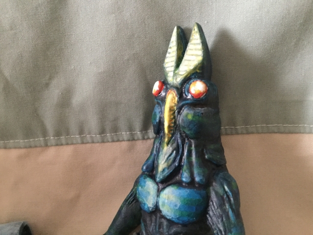 プラモ 二代目バルタン星人出来た。 投稿者: murbo 投稿日: 2017/09/192017/09/19 半分くらい紙粘土で自作してしまったバンダイのプラモデルの二代目バルタン星人。プラモ部分は顔だけと言いたかったが、目と口らしき部分も石粉粘土で作り直してしまった。 まだベースを作っていないので直立できず。 ベースは木工用の塗料を発掘したので完成品が溜まった分、そろそろ作ろうと思います。 今回のパレット 関連記事: 二代目バルタン星人塗装中。 地底怪獣を塗ってる。 二代目バルタン星人を制作中。そろそろ仕上げ