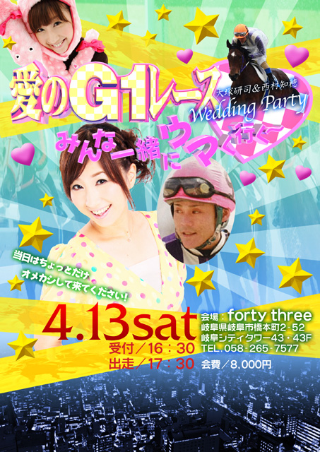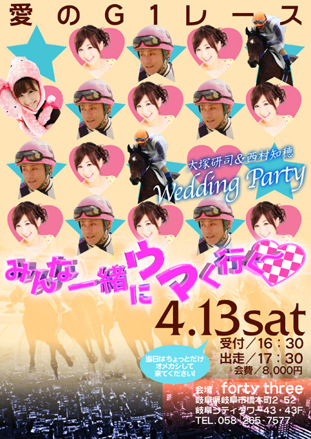 新郎が騎手で新婦がタレントなんだね。できれば新郎にもアー写撮ってあげて欲しい。