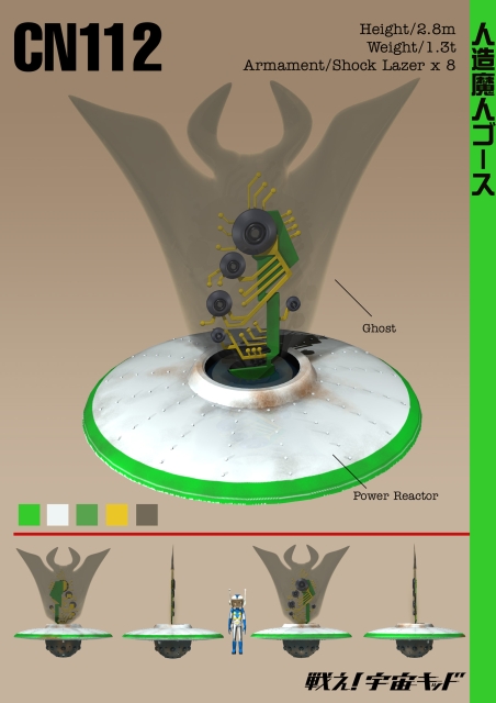 Picture・宇宙キッド・自主制作・gallery 人造魔人ゴースのカード的なやつ 投稿者: murbo 投稿日: 2013/09/272017/01/11 人造魔人ゴースは架空のTVアニメ、宇宙キッド第三部超電子頭脳ズレイノウン編の第27話「よみがえる宇宙魔人」に登場する敵メカ。 第一部の大ボス、魔人ゴースをかたどったニセロボット。怪電波で動物を操る設定らしい。 次行ってみよう。 第一部と第二部の敵メカや怪獣を集めた怪獣図鑑はAmazonのKDPで発売中。 ただいま無料キャンペーン中です。 関連記事: IRON ALIENのカード風のやつ ヘルブロスのカード的なやつ ズレイノウンβ戦闘体のカード的なやつ
