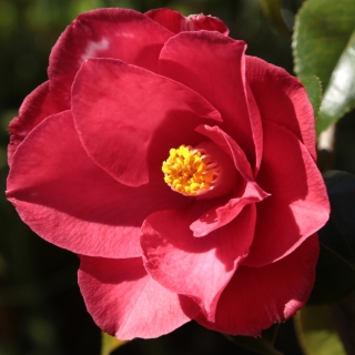 分かりやすい形。花に興味の無い人の想像する椿の形はこれだろう。安心と安定の咲き具合だがこれは半分くらいしか開いていない。