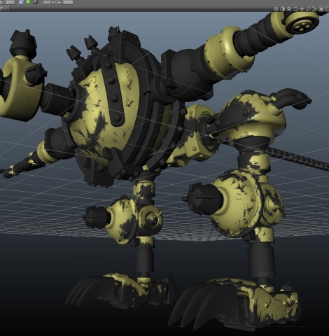まだまだ塗装を剥がしている。自動で剥がれるプラグインがあるといいが、こんなに気まぐれに適当に剥がれるのは作れないよね。自然に剥がれそうなエッジ以外にも何かにぶつかって剥がれたという設定の剥がれ方もしている。また、嗅がれた形が格好いいかもしれないから剥がしている部分もある。つまり嘘だ。この嘘が論理的に作る場合にやりにくい。リアルになれば成る程でもある。嘘のバランスがフィクションの面白さだね。