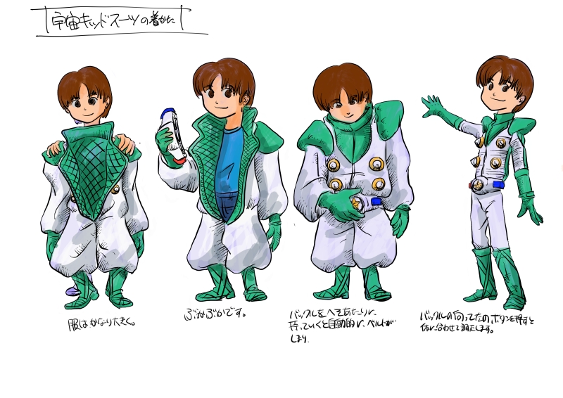 宇宙キッド対ドテドン 宇宙キッドスーツの着方。 投稿者: murbo 投稿日: 2017/08/16 宇宙キッド対ドテドンに出てくる宇宙キッドスーツを着る方法。サイズが全く違う大きさのまま着ます。ジッパーを上げてバックルをお腹に当てるとスーツとそれを着る人の認証をし、ベルトが自動的に出て締まります。バックルの赤いボタンを押すとスーツが体に合うように調整され、完成です。 脱ぎ方。バックルの赤と青のボタンを同時に押すとスーツが膨らむように大きくなる。 ホームカミングのスパイダーマンのスーツのダサい版みたいになったな。がっかりだw 関連記事: 宇宙キッド対ドテドンに出てくる人たち 相関図2 宇宙キッドスーツを着た子