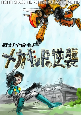 なぜか三作目まである。三部作だね。これは第三部をモチーフにしていて、こういったヒーローものには偽者、しかもロボットが定番なので、その回を採用している。それだけでは変化に乏しいので別の回も混ぜてクライマックスで別のロボットに変形することにしている。といっても作らないんだけどね。子どもが空き地で遊んでいる感じにみえるな。ロゴは機械っぽくしたかったが機械モノが苦手なのでどうしたものかと悩みながら描いたらそうでもないように見えなくも無いね。ということで、そろそろ作業再開しよう。なかなか一人だとやる気が上がらないからね。