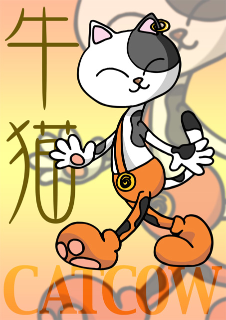 Picture・gallery 牛猫 投稿者: murbo 投稿日: 2013/02/092017/01/11 多分、昔のマッキントッシュのプリント設定画面に登場するドッグカウを眺めていて、犬を猫にして描いてみようと思ったんじゃないかな。眺めていたのは、当時毎日チラシを作っていて、それがやたら大きいサイズだったので何度もプリントしなくてはいけなかったからだ。 関連記事: 牛猫二つ目 フライを捕るウサギ 仕事で描いた…はず。