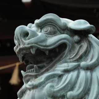 狛犬は主に石が素材になっているが、違うものもある。たしか金属だったか、農具を祀る神社の狛犬は木製だったと記憶している。