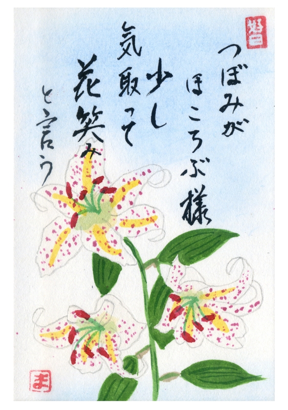 花心 花心、七月 投稿者: murbo 投稿日: 2016/07/012016/06/30 一回目なので説明を書きます。 花心という絵手紙集をKDPで配布していまして、その後も書き続けているのです。書いているのは僕じゃないです。 謎の人ってことでもないですが、ネットが使えないので僕が変わりにデジタル化や編集をしています。 これから月刊ペースで公開予定です。大きいサイズは北極大陸にも載せていきます。 関連記事: 関連記事はありません。