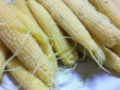 15-06-11 13 55 402015年6月11日頃になってしまったが、ベビーコーン、若しくはヤングコーンを頂きました。写真は調理済みのもの。