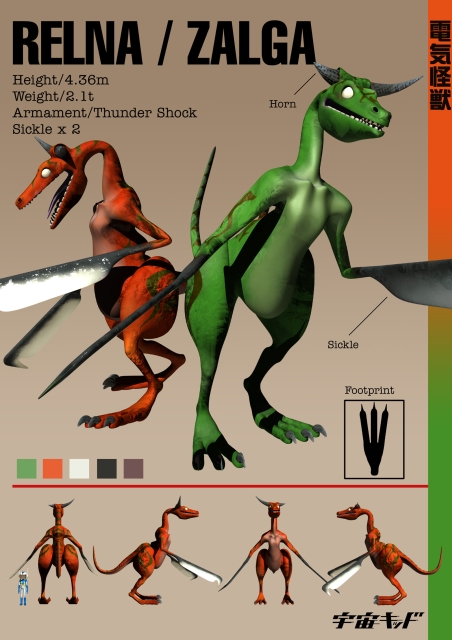 宇宙キッド・自主制作 電気怪獣のカード風のやつ 投稿者: murbo 投稿日: 2013/08/232017/01/14 電気怪獣レルナとザルガは、架空のTVアニメ、宇宙キッドに登場する敵怪獣。第20話「プラスとマイナス」に登場。電撃と両手の鎌が武器。 第一部の怪獣(的ロボット)をまとめた怪獣図鑑1はAmazonで発売中。 次行ってみよう。 関連記事: 電気怪獣 ダルバスのカード風のやつ 多面怪獣