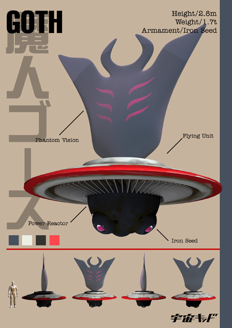 ということになっていて、今回は各部の名称を少し考えた。円盤の下の球体が本体なのはこれまで通りで、更にその球体についている球体はIron Seedを言って、毎回登場するアイアンモンスターの元になる設定だ。