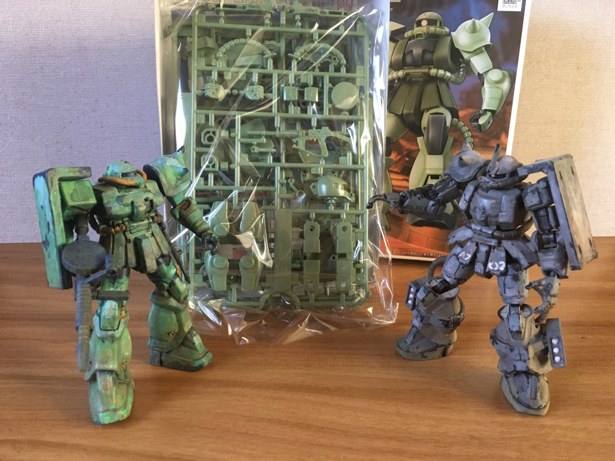 プラモ 1/144 scale ZAK 投稿者: murbo 投稿日: 2021/03/152021/03/15 FG-03 1/144スケール MS-08f ザクII。ネット上のコンペに自主的に参加するために購入。安かったことと、このFG版のザクは冷遇されているんじゃないかと思ったのが買った理由。向かって右のGフレーム版ザクより安くて大きい。向かって左のザクも食玩でPVC製。どんなシリースだったか忘れた。どちらもリペイントしている。 関連記事: 1/144 ZAK 210316 ガシャポンに対して戦意喪失。 1/100ザクも到着。