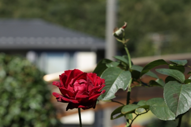 台風一過の日。薔薇は背が高くなりすぎて折れそうだった。ハイビスカスはそれより背が低かったにもかかわらず、花だけ千切れ飛んだ。