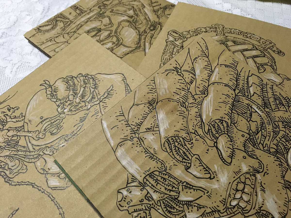 Picture 20240803 投稿者: murbo 投稿日: 2024/08/052025/02/07 9月の展覧会には出しませんが、練習で描いています。練習ではありますがそれなりに枚数が溜まってしまったので実際に描く絵とともに展示しようかと思っています。練習している部分は段ボールに自作の竹ペンで描くことと、描いているモチーフのデザインです。 関連記事: 240830 240920. 241006.