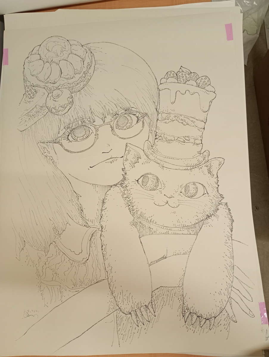 よく絵を鏡に映してバランスチェックするとか言われます。仕事を始めてから随分経ってから知りました。そんなことやったことがないです、ということを数年前に知り、photoshopでひっくり返した絵を載せたことがありました。特に変化がなかったので面白みのない状態でした。今回裏抜けが酷いのでそれを思い出して裏から撮影してみました。特に絵のトレーニングも学習もしていないのでこんなものでしょう。