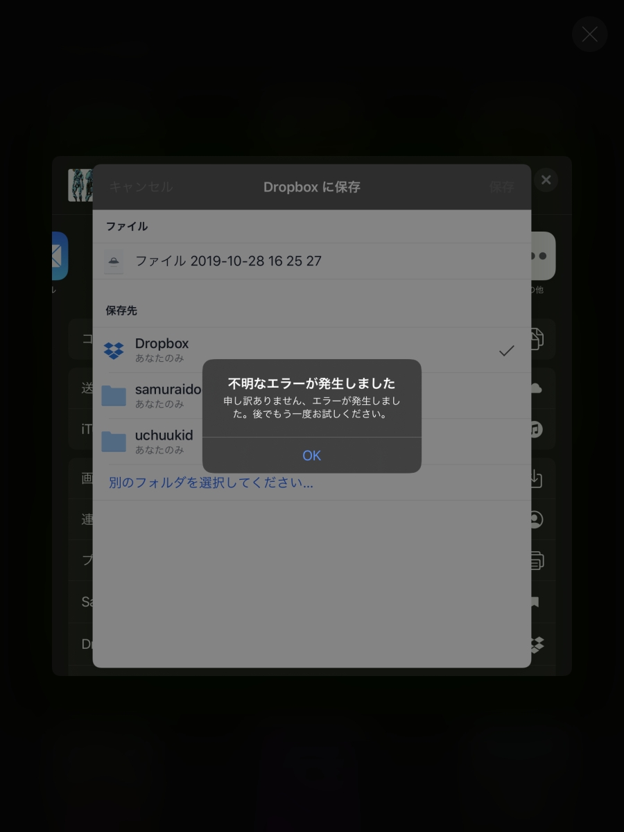 ならばリストになっているDropboxに保存ならと思いますよね。タップするとエラーです。なめとんのかw