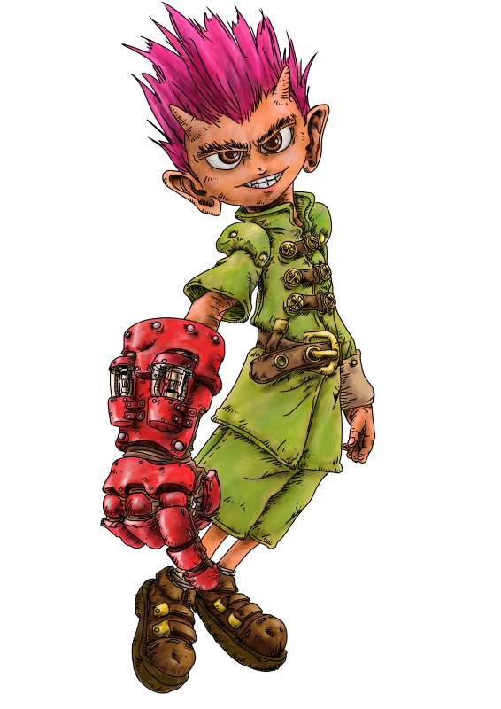 以前描いたものとは全然違うし、赤いのは髪の毛と右腕だけですっかり設定を忘れているね。小僧部分だけは活かそうとしました。
