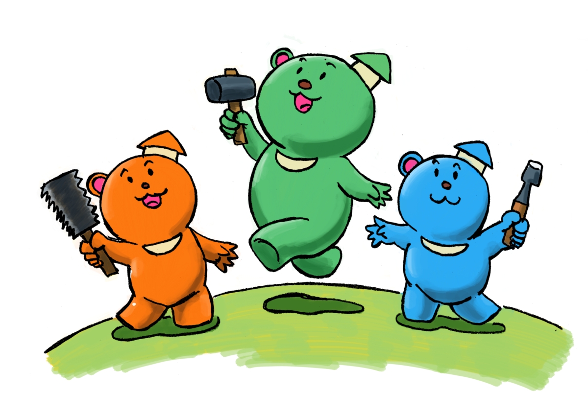 昔仕事でデザインしたキャラクターを記憶スケッチしている。意識して色を変えてもいるが、それはオリジナル逃れみたいなことではなく、三人のキャラクターの見分けがはっきりしないので大きく色を変えたほうが良いと思ったから。じゃ、なんで当時やらなかったかと問うならば、仕事なので僕以外の意見も大きく取り入れられるのだよ。