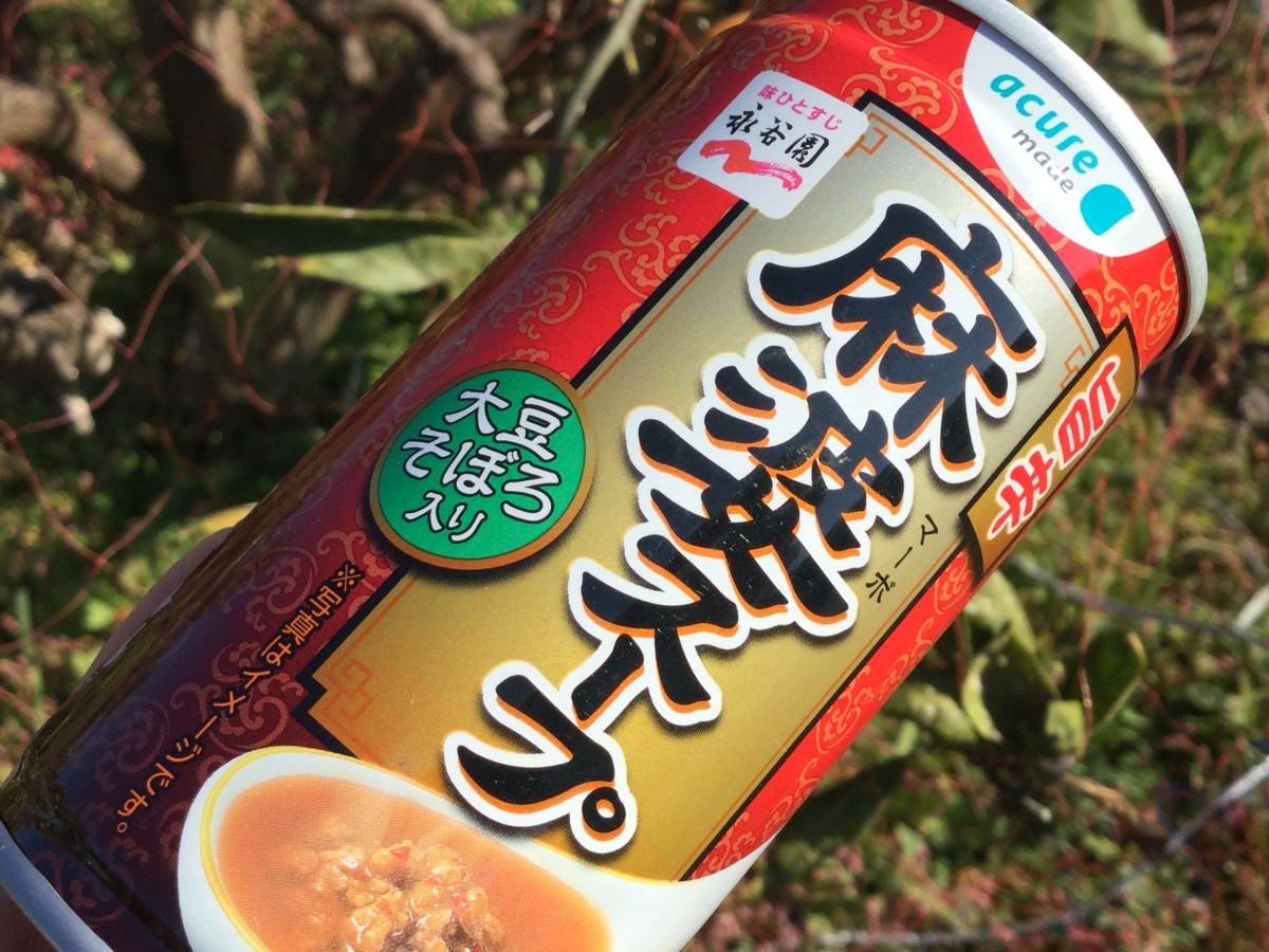 味は中華スープに唐辛子を入れた感じ。名前に偽りない感じはする。よく振ったが大豆そぼろは底にたまってしまった。このそぼろは代用肉っぽい感じで健康志向よりジャンク感を感じて缶に入っているものとしてよいと思った。