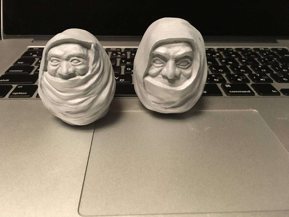 プラモ ヒゲ達磨制作中。220925 投稿者: murbo 投稿日: 2022/09/262022/09/26 あちこちエッジが欠けていたりへこんでいる部分を溶きパテで埋めます。細かい傷はサーフェイサーが良いと思ったが、紙粘土と相性が悪いのかぺりぺりはがれて役に立ちませんでした。 古式ゆかしい溶きパテ作業。 大体できたのでヒゲを付けます。実は一回失敗している。落ち着いて削って加工することにした。 リアルからは程遠いがこの材料でできる範囲。 溶きパテ塗って表面処理をごまかしつつ、完成へ進める。 関連記事: 制作中。220916 制作中。220917 ヒゲ達磨に座布団完成。