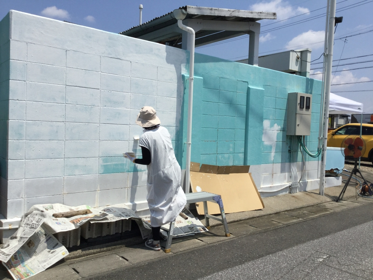 吾妻屋燃料部の壁に描いています。カネスエ瀬部店の近く。水が足りなかった。
