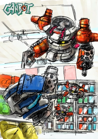CANBOT・自主制作 CANBOT横 投稿者: murbo 投稿日: 2014/12/082016/11/20 これがどんなところで活動するか描いていなかったので描いた。とりあえず考えているだけの思い付きを絵にしてみると、単純な組み合わせなのに描くのは面倒なことが分かった。 やっぱり背景などきちんと調べないとな。あ、色を間違えている。肩がトゲの奴は赤だった。 関連記事: 自動車続き DOGLLA004 DOGLLA005