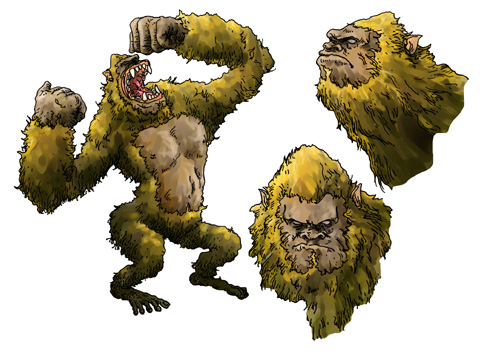 だがしかし、キングコングは版権の都合上描けないので金色の毛のゴリラを描いたのだった。理由は常に気持ちじゃなく、しょうも無い現実的物理的な理由からなのだ。