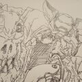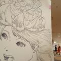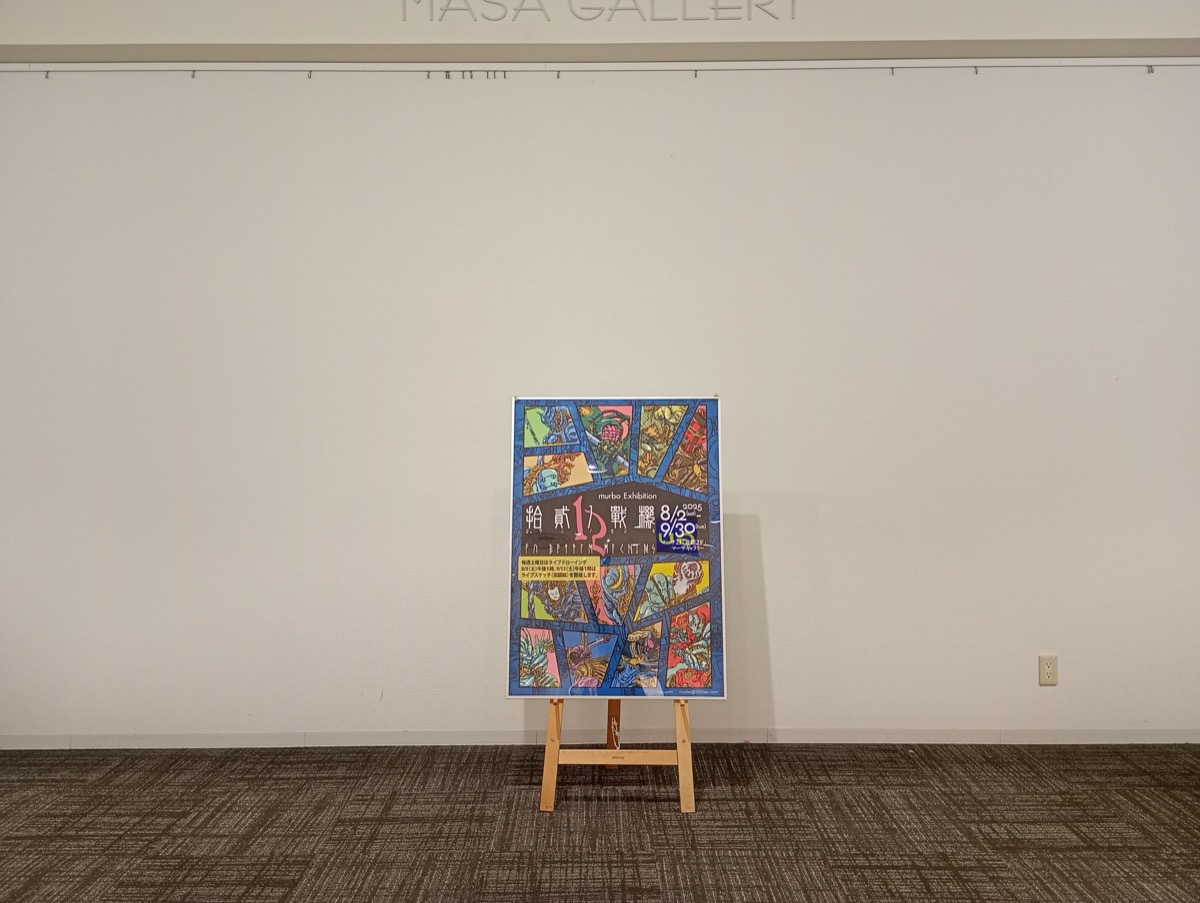 展覧会で在廊できるならできるだけ会場で絵を描くようにしています。僕は知られていない上に、肩書きがないので現地で実際に描かないとなんだかわからないのです。とにかく描くのです。この会場で描くのは結構見てくれる人もいて、それなりに効果はあるかなと思っています。なにせ会場はショッピングモールの壁面展示ですし、アート的な感覚より描いている時は演芸のつもりでやっています。完成したものより描いている様を楽しんでもらえるといいな。