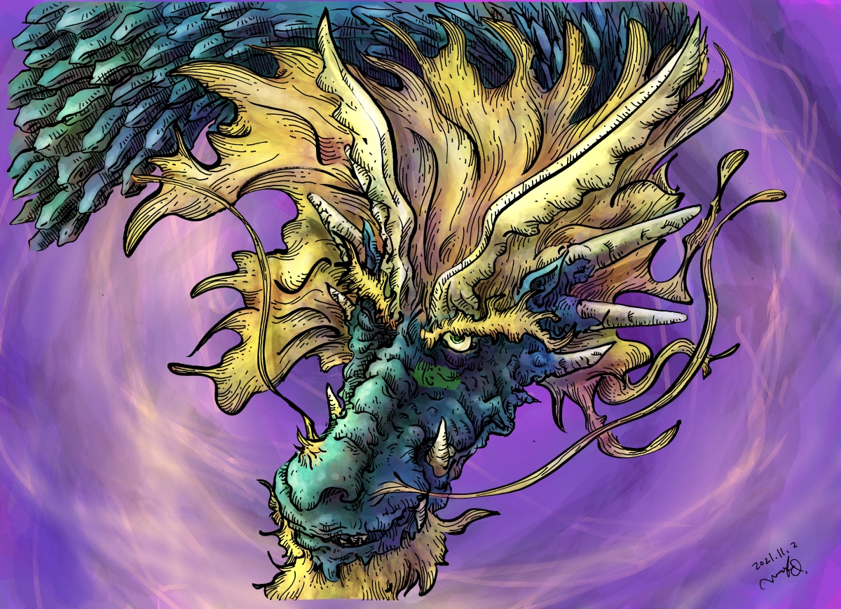 絵馬がアトリエに転がっていたので捨てるのもどうかと思ったので再利用する前に紙に練習で描きました。色はProcreateでつけました。彩色はタイムラプスでどぞ。