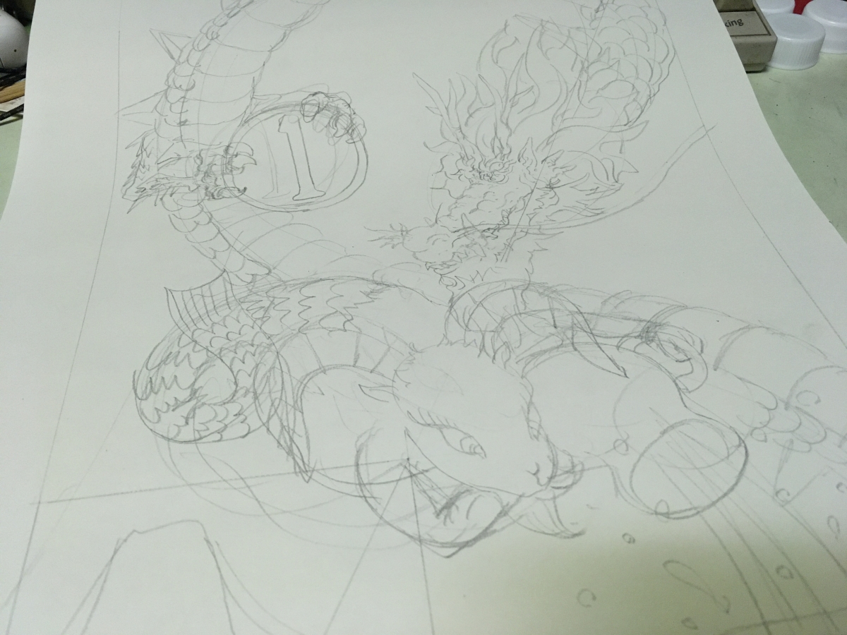 毎月一枚描くイラストのサイズがまちまちなっているので、A3に揃えるべく描きなおしています。