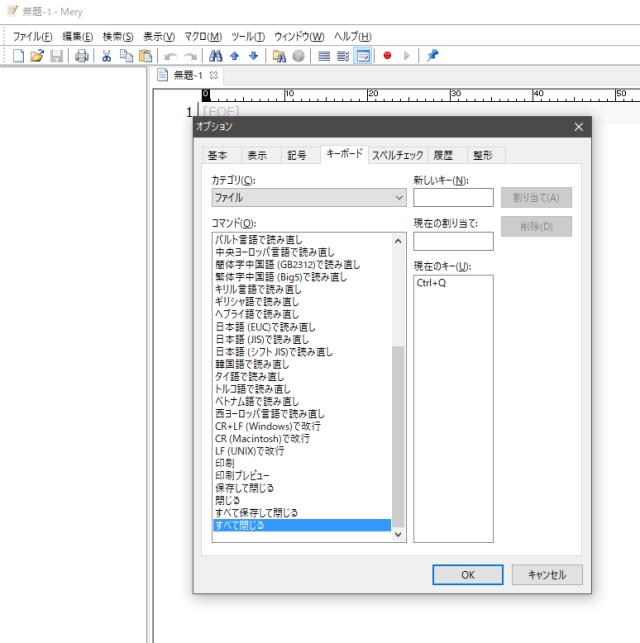 まず、ウィンドウを閉じる、Mery自体を終了するショートカットを変えます。