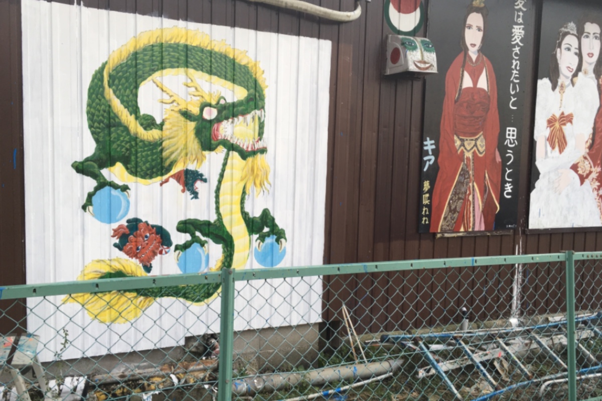 百万ドルで絵を描く四日目。今日はまーびんさんはいない、一人の作業。狛犬とたてがみを描いていました。他もちょっと手を入れる。今週は前半の天気が悪いので再開は週の後半です。