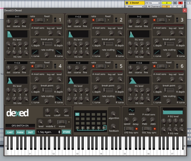 VSTi dexed 投稿者: murbo 投稿日: 2017/09/152021/06/06 FMシンセサイザーDX7のクローン。VSTiでフリーウェア。 見た目が仰々しくてかっこいいので入れています。使っているかというとそうではないが。 DLはここから。 [blogcard url=”http://asb2m10.github.io/dexed/″] 解説などはこちらから。 [blogcard url=”https://github.com/asb2m10/dexed″] Readers who viewed this page, also viewed:DexedのVSTiが見つからない!を暫定的に解決。 関連記事: DexedのVSTiが見つからない!を暫定的に解決。 RA Mowg Magical 8bit Plug