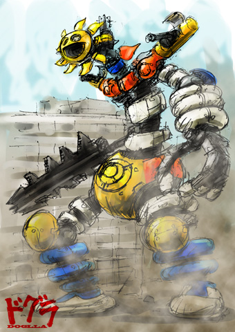 口から破壊光線。手足の爪だ。頭から背中経由で尻尾まで続く青い部分は鎧のような役割をする。この部分と手足の爪を使って土の中を掘り進む。ドグラというのはドリルモグラから来ているんだね。読むと精神に異常を来たす小説とは無関係だ。