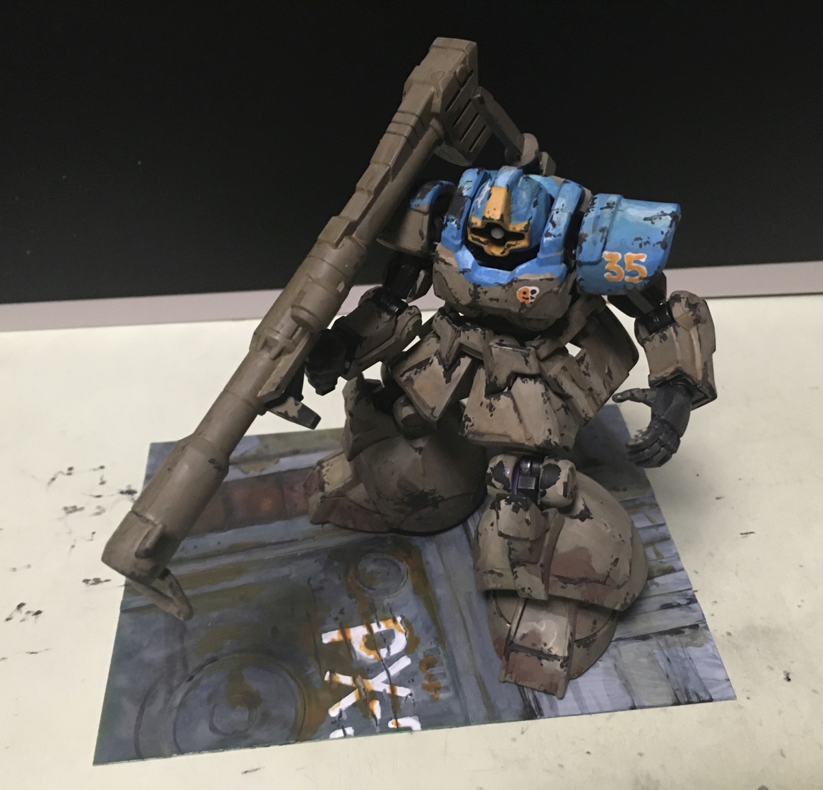 プラモ ドムGフレーム完成。 投稿者: murbo 投稿日: 2021/03/162021/03/16 やっと完成。Gフレーム版ドム。下の板はプラ版にデザインして筋彫したりプラ切って貼ったのに塗ってみたらなにもない板に描いても同じ効果になってしまった。文字は手書き。 Readers who viewed this page, also viewed:ゲルググGフレーム完成。 関連記事: Gフレーム02 ドム買った。 Gフレーム版ドムを塗装している。1 Gフレーム版ドムを塗装している。4